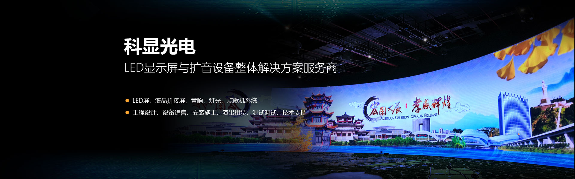 武漢科顯光電有限公司是一家集工程設(shè)計(jì)、設(shè)備銷售、安裝施工、演出租賃、測(cè)試調(diào)試、技術(shù)支持等多元化服務(wù)為一體的專業(yè)LED屏、液晶拼接屏、音響、燈光、點(diǎn)歌機(jī)系統(tǒng)集成服務(wù)商。在市政、交通運(yùn)輸、銀行證券、體育場館、商場、機(jī)場、車站、港口、醫(yī)院、院校、教育系統(tǒng)、工商、稅務(wù)、KTV等領(lǐng)域得到廣泛應(yīng)用。...
